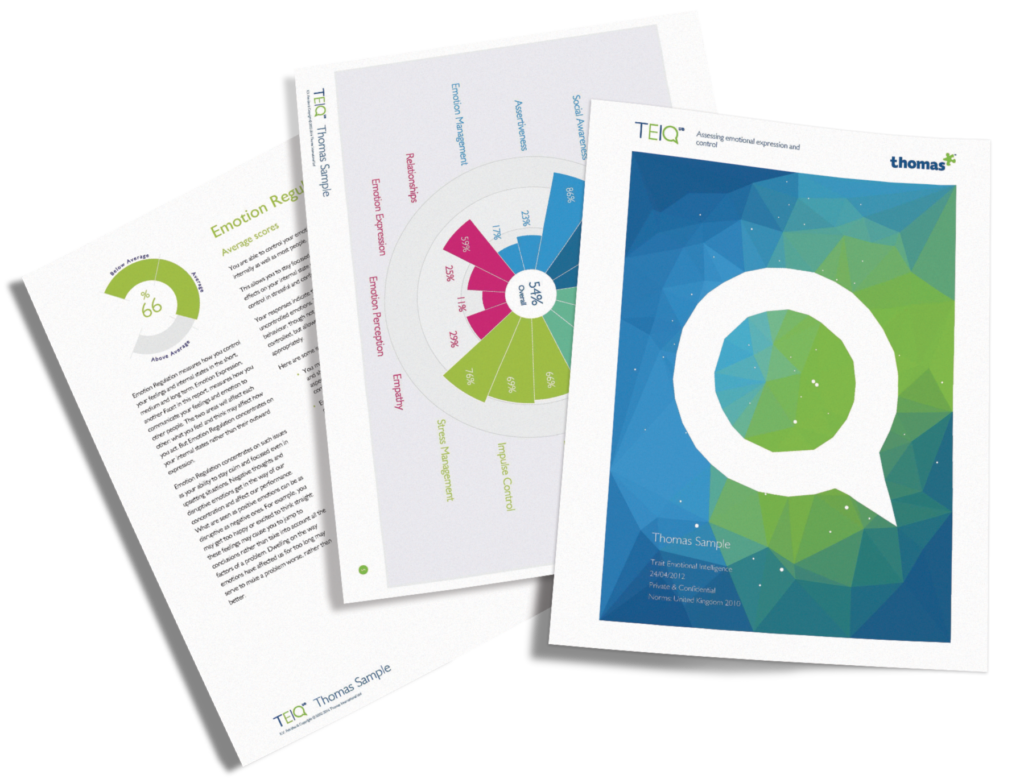 The assessment measures 15 facets of trait emotional intelligence across five factors: well-being, self-control, emotionality, sociability, and independence. You’ll get a detailed picture of emotional strengths and areas for development.